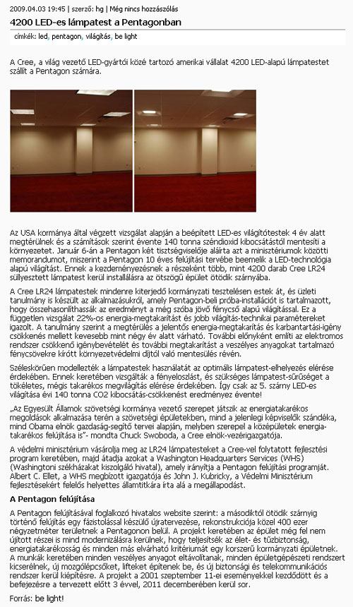 - 4200 LED -es lámpatest a Pentagonban