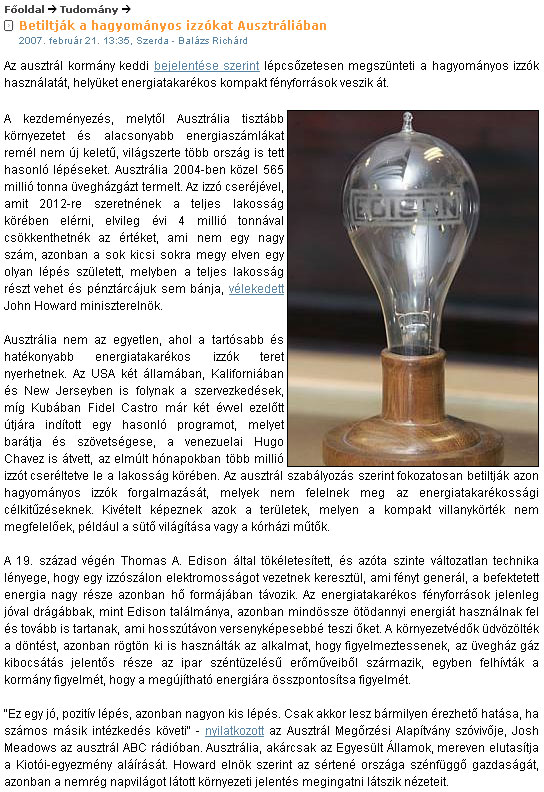 - Betiltják a hagyományos izzókat Ausztráliában