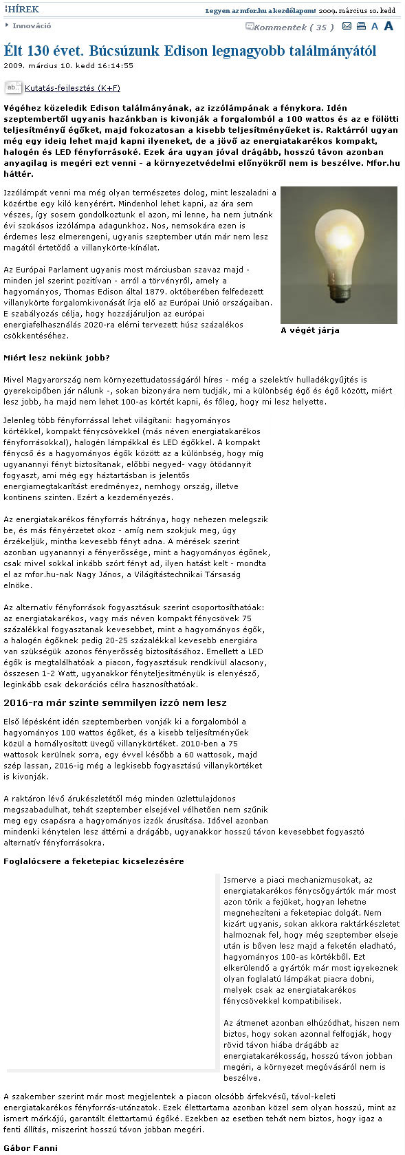 - Véget ér az izzólámpák korszaka