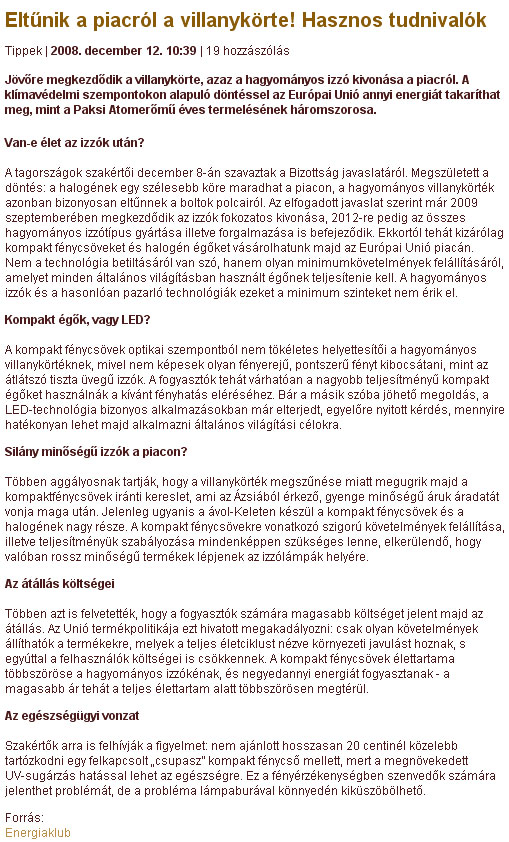 - Eltűnik a piacról a villanykörte