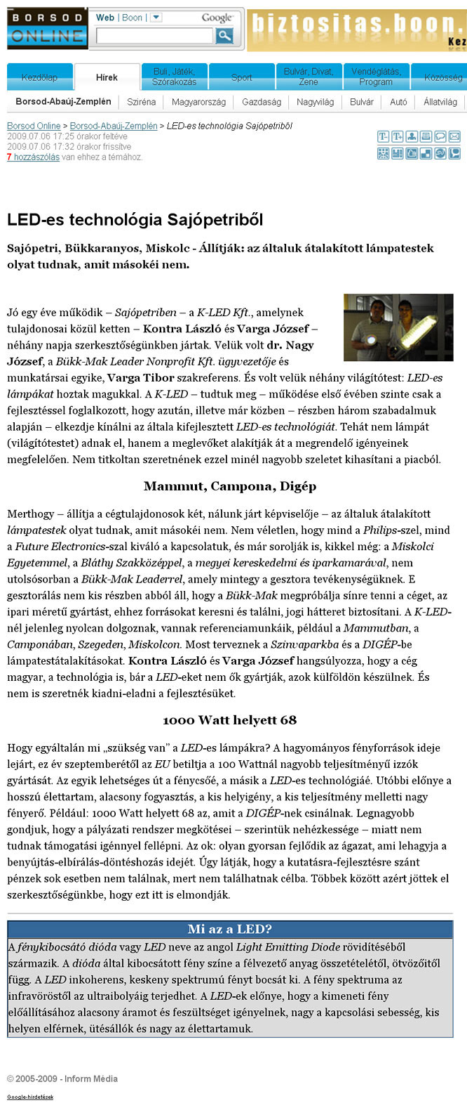 - LED -es technológia Sajópetriből