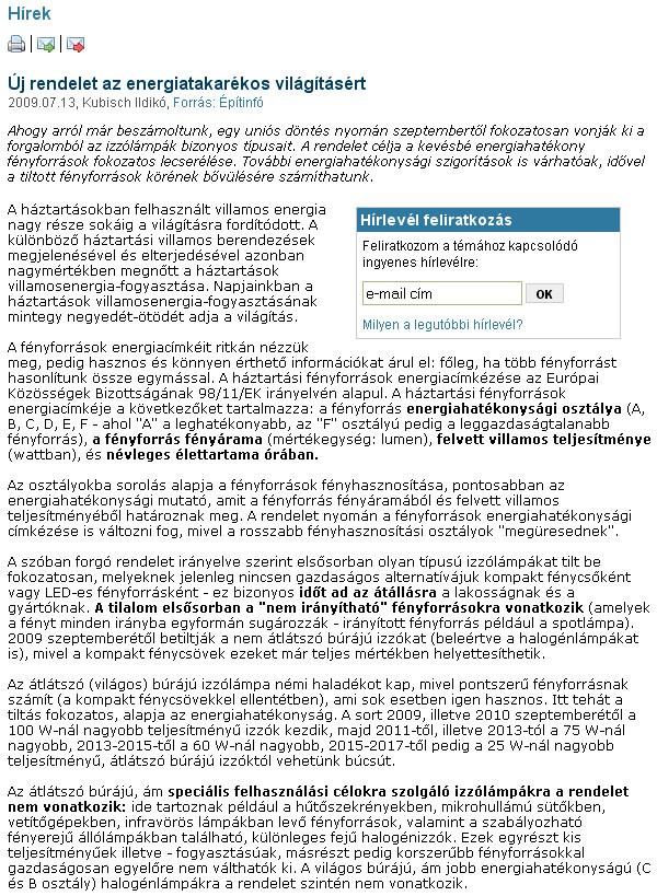 - Új rendelet az energiatakarékos világításért