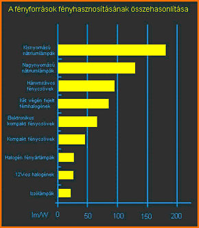 | Fényhasznosítás A fényforrások fontos jellemzője. A fénykeltés hatásfoka. A kibocsátott fényáram és a fényforrás által felvett villamos teljesítmény hányadosa. |